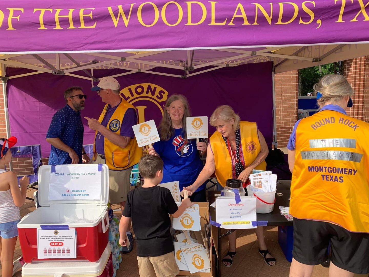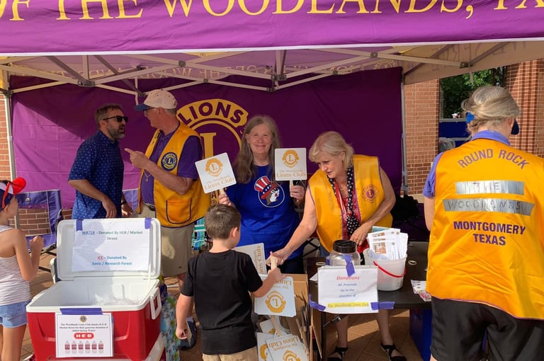 The Woodlands Lions Club will be located in front of Town Green Park. The Lions provide a DJ, Fans, Water, and some treats. Come by and help us celebrate our nations birthday.