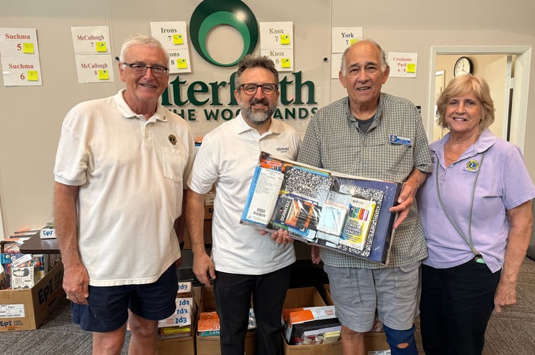 We believe in the power of service and community, and together, we're creating positive change. This week our members were supporting them in action by helping their "Kits for Kidz" school supply distribution program. Discover more about Interfaith at woodlandsinterfaith.org