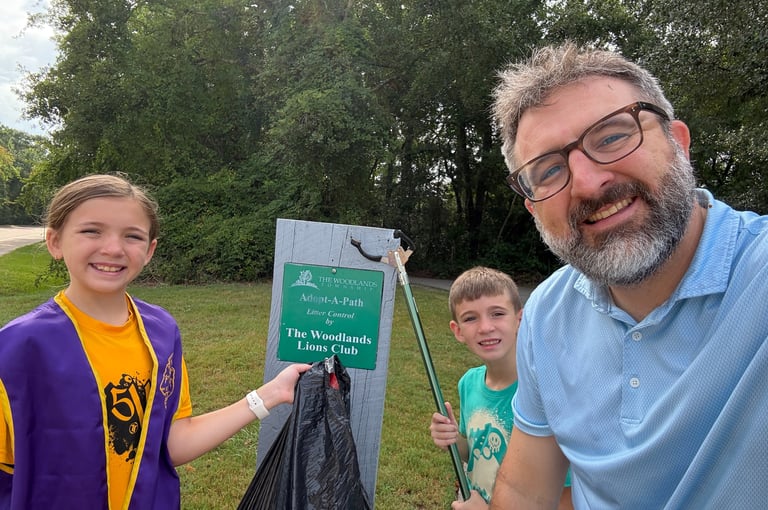 Saturday, July 26th, 2025 - At The Woodlands Lions, we're not just about meetings—we're about action. One of our favorite community projects is maintaining our adopted path, where members, families, and friends come together each quarter to clean up and protect our environment. 💚 It’s a simple act with a powerful impact: cleaner trails, stronger community, and a better planet.